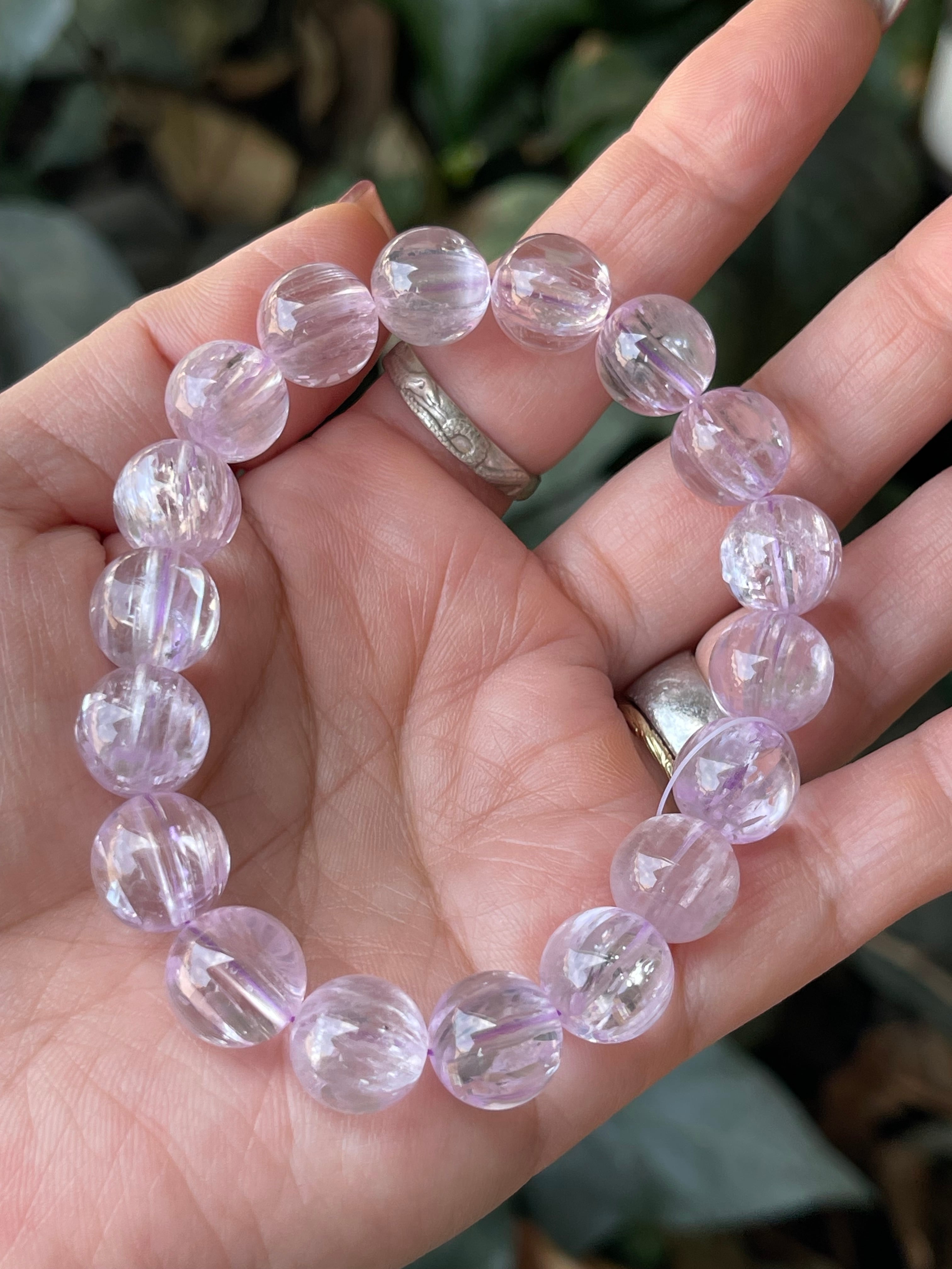 ▷こちらのレインボークンツァイトブレスレットは、鮮やかな色合いを持つレインボークンツァイトを使用した魅力的なアクセサリーです。シンプルでありながら、その美しさは手元でしっかりと存在感を示し、日常から特別なシーンまで幅広く活躍します。