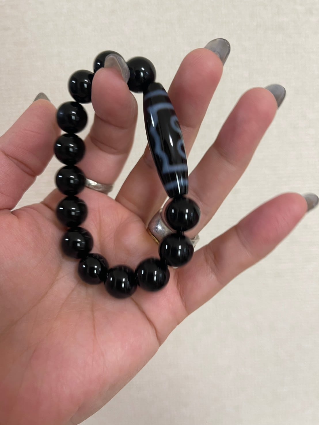 ▷こちらのkiume様専用 モリオン&天珠ブレスは、神秘的なエネルギーを持つモリオンと古代からの霊力を秘めた天珠を贅沢に組み合わせた特別なアクセサリーです。シンプルながら、その洗練されたデザインは手元でしっかりとした存在感を示し、日常使いから特別なシーンまで幅広く活躍します。