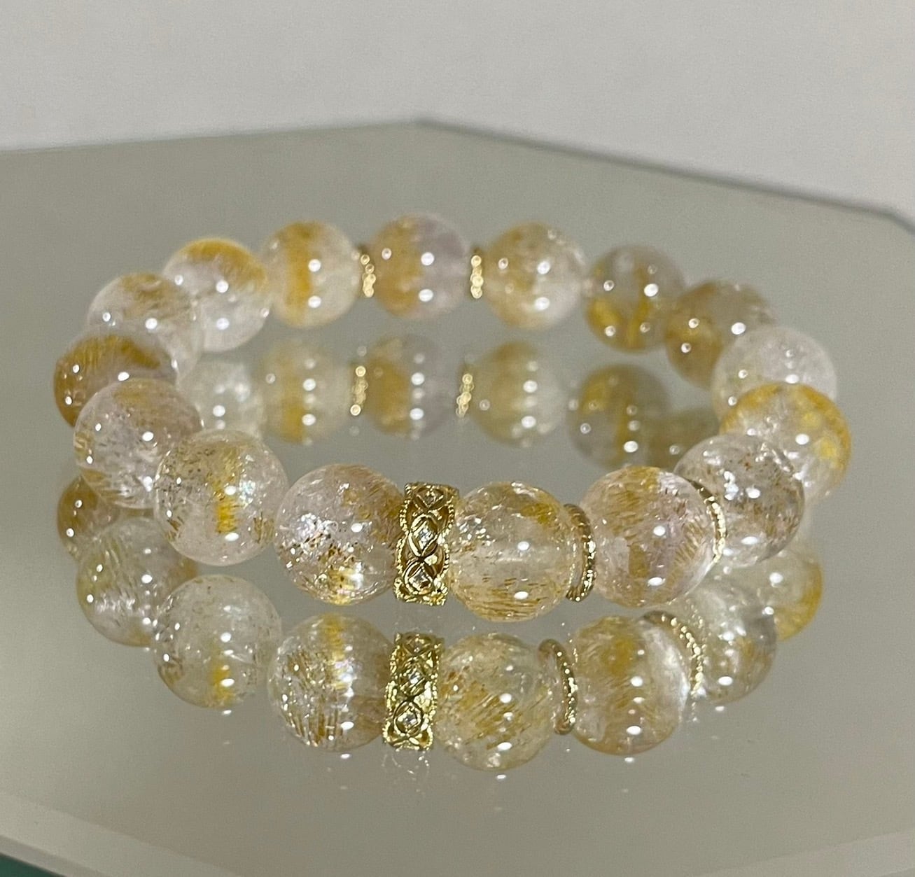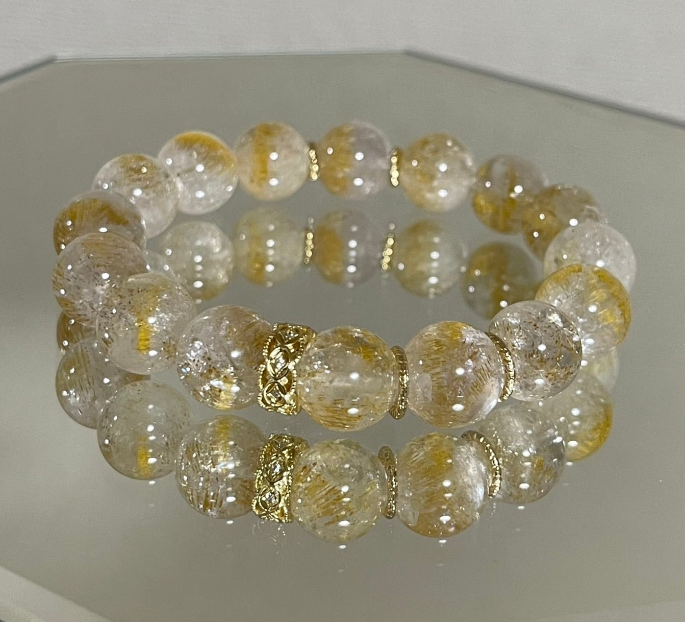 別名カコクセナイトインクォーツとも呼ばれる黄金の輝きが美しいブレスレットです。